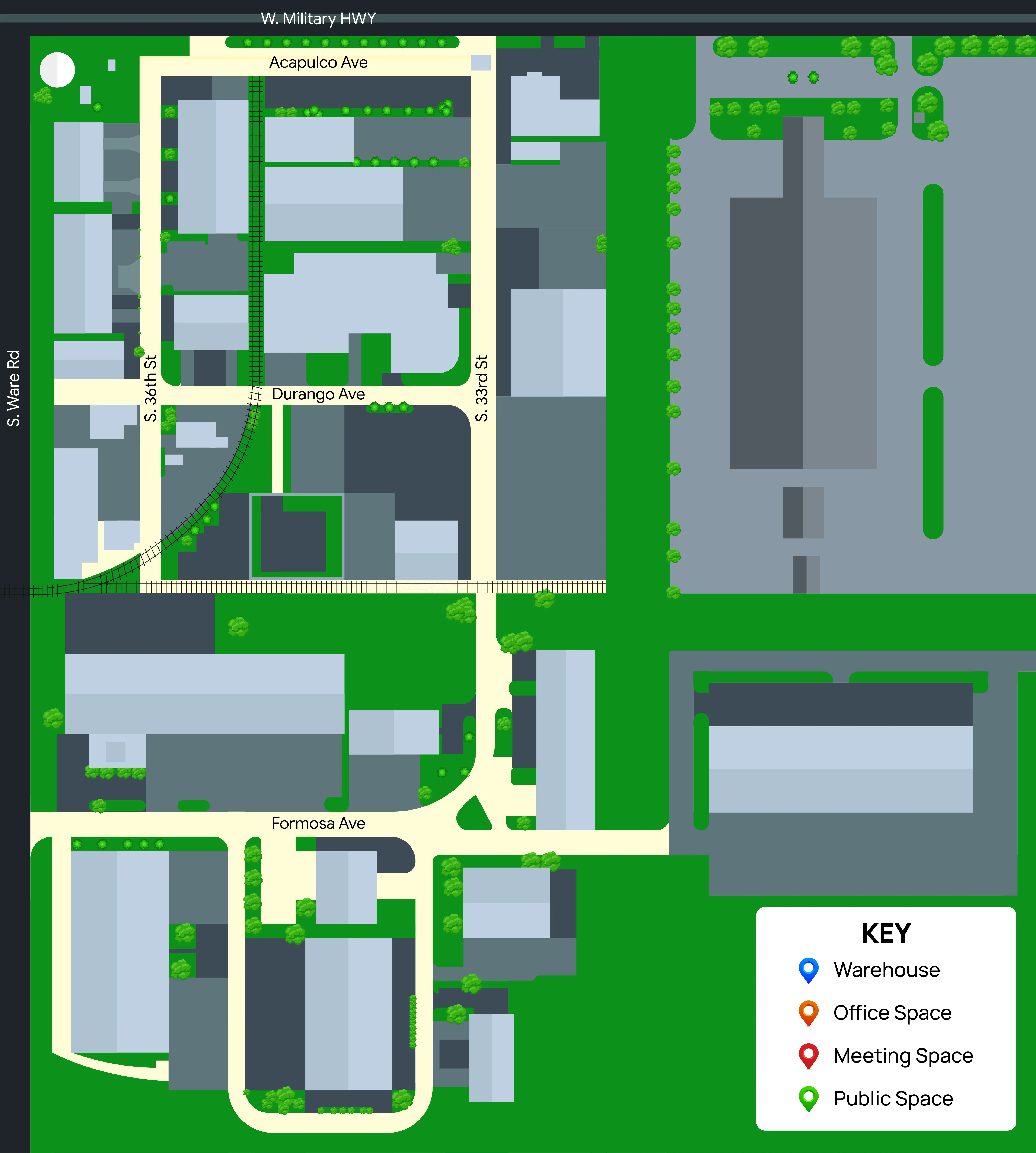 Explore McAllen FTZ like you’re here in person. Click on any pin in our interactive map to step inside the space with a 360° virtual tour and see what each building has to offer.